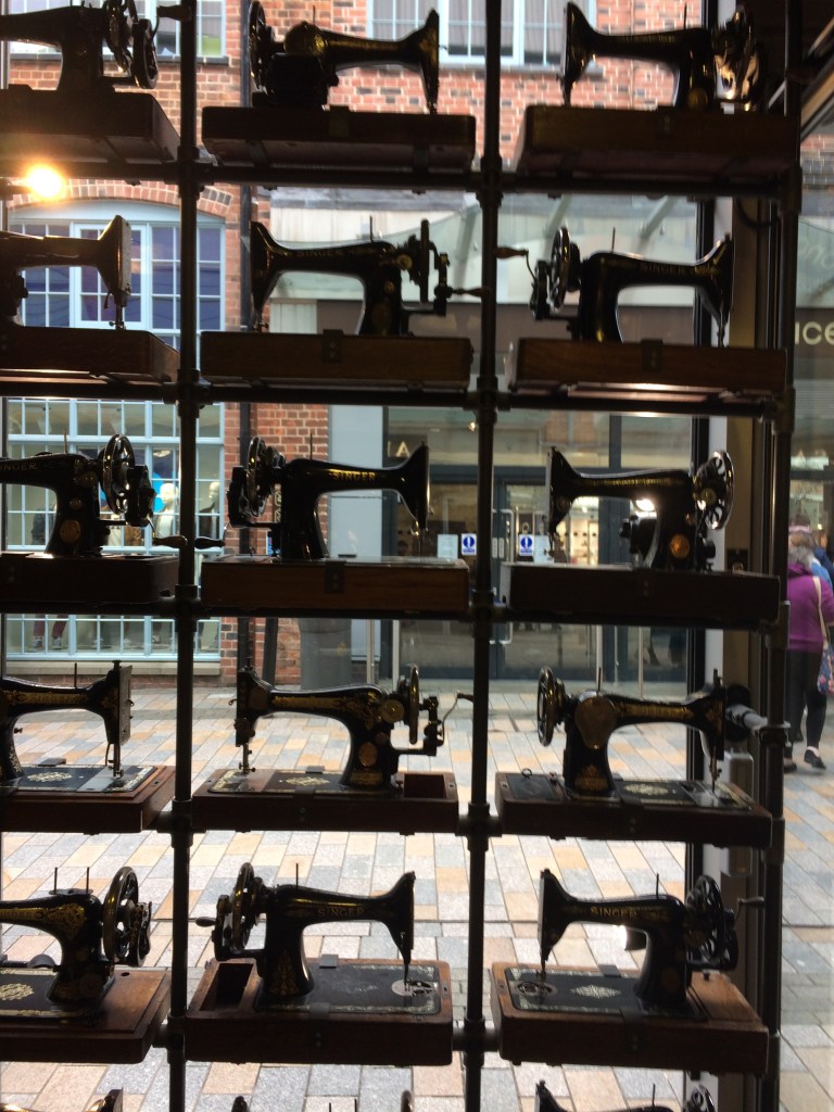 Loved this collection of old sewing machines in a shop window!