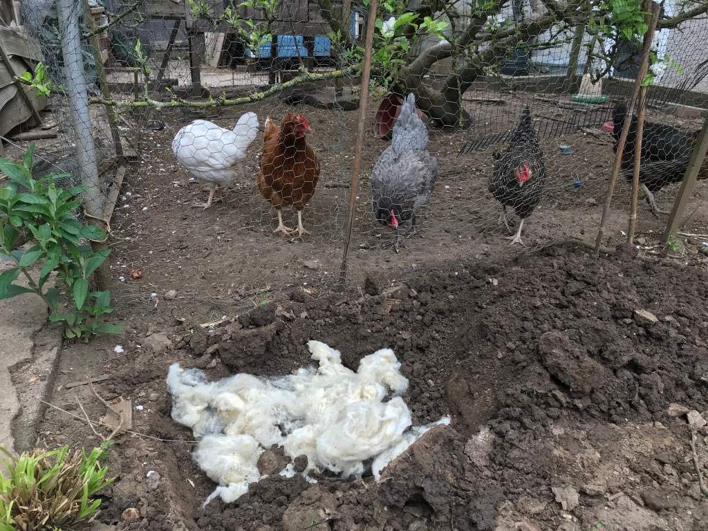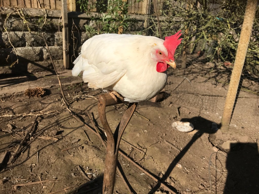 We have 5 chicken at home; they are called Penny, Shadow, Storm, Misty and Sally. They lay beautiful eggs. We used to have a chicken that laid green eggs. There is a picture of her later. Her name is Speckles and she had one green eye and one brown. We have had lots of chickens, sometimes six at a time. We have also raised chicks before; they were so cute.