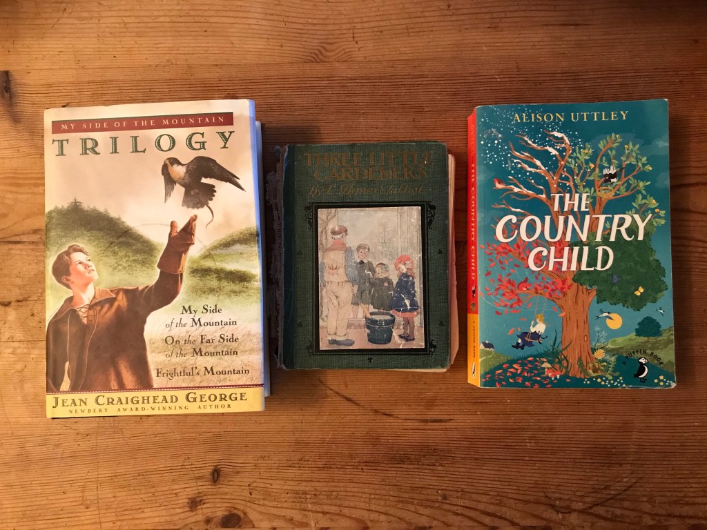 In addition, I sometimes take a year to read through a book which correlates with the seasons. This year we are reading The Country Child by Alison Uttley. The Little Gardeners has been much loved, but I’m sure is out of print. The My side of the mountain trilogy by Jean Craighead George is set in the Catskill mountains and the boys and I really enjoyed it as a bed time story. Books are a great way of developing a love of the great outdoors within our children and ourselves. For some more book suggestions see the one I put together here