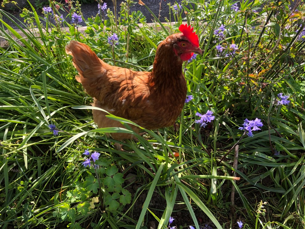 Our beautiful Penny Hen, Sparkly Eyes’ faithful lockdown companion. She was getting to be an old lady and died peacefully while lying in the sun today. Lots of tears for Sparkly Eyes but many good memories too.