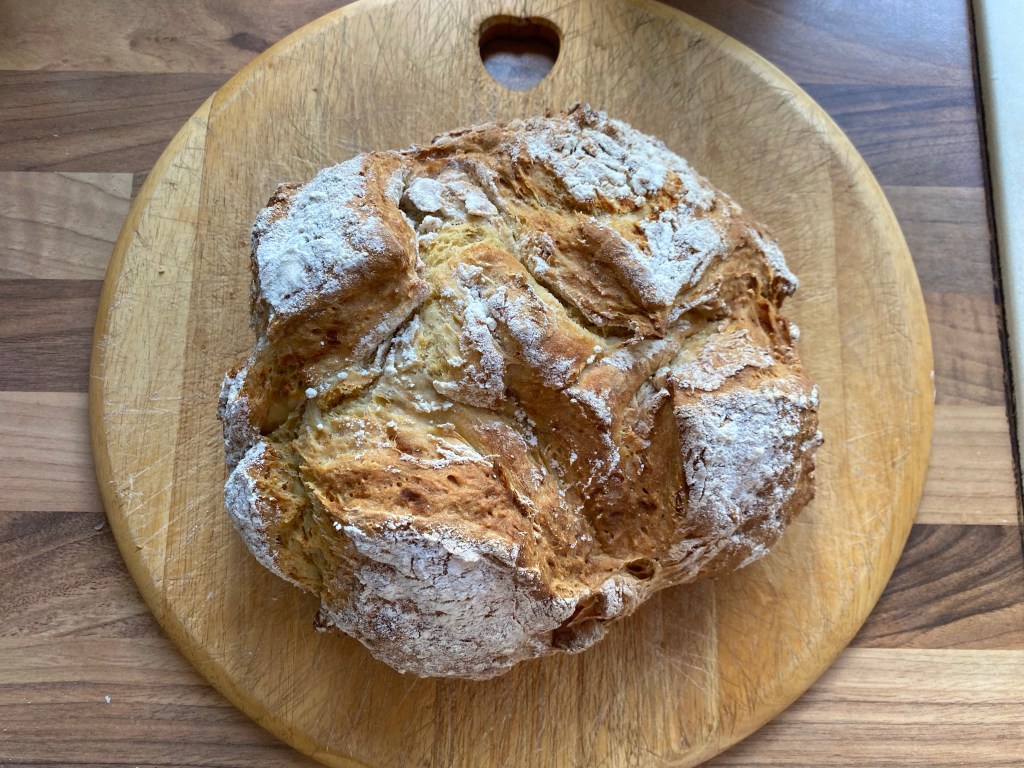Sparkly Eyes and I made this soda bread (an Irish recipe) for lunch on a day when our learning revolved around finding out about the early Celtic and Roman Catholic missionaries. Every fortnight we have the delight of sharing our day with another teenage girl and her mum and it’s an opportunity to do something a little different. So last week we read about Patrick and Columba, Aiden and Cuthbert. We studied the Celtic cross of Iona and designed our own crosses using chalks. We then had a look at the Lindisfarne gospels and wrote and illuminated a Bible verse. We listened to a Gregorian chant, from the Catholic tradition and then talked about the significance of the Council of Whitby where Catholic and Celtic traditions collided. I found it all especially poignant as we’ve visited both Iona and Lindisfarne, beautiful and windswept islands, on separate summer holidays; living history at its best.